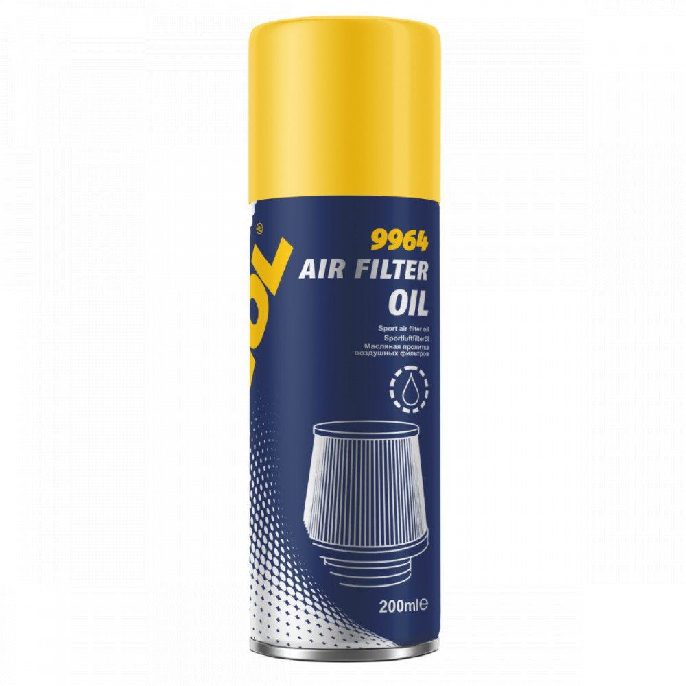 Légszűrő olaj ami különlegesen ragadós impregnálás alacsony ellenállású légszűrőkhöz (HIGH-FLOW LÉGSZŰRŐ)-a köznyelvben a "nulla-it" vagy a "nulla ellenállású szűrők". Alkalmas minden 2-ütemű használatra valamint 4 ütemű motorkerékpárok és robogók lég- és vízhűtéses motorral, valamint bármely más berendezésben, amelybe az ilyen szűrők rendesen vagy hangolási részletekként vannak felszerelve.Tulajdonságok:- Maximális levegőellátást biztosít, növeli a motorteljesítményt;- Megbízhatóan tartja a port, szennyeződést és homokot a legszélsőségesebb körülmények között is. Csökkenti a kopást és meghosszabbítja az olajcsere intervallumát. Megszünteti a motor szennyeződés okozta károsodásait, meghosszabbítja élettartamát, és csökkenti a karbantartási és javítási költségeket;- Kiváló tapadási tulajdonságokat biztosít a szűrőnek, így hatékonyan visszatartja a legkisebb porszemcséket is, miközben biztonságosan tartja a szűrőelemek felületén;- Motorsportban ajánlott használni;- A szűrőt halvány rózsaszínről vörösre színezi, és a szín azonnal vagy egy idő után megjelenhet;- Teljesen kiküszöböli a HIGH-FLOW szűrők működés közbeni megsemmisülésének kockázatát.Alkalmazás: Távolítsa el a szűrőt. Tisztítsa meg a szűrő felületét a durva portól és szennyeződésektől koppintással, majd puha halom ecsettel. Vigye fel a MANNOL Universal Cleaner 9972 tisztítószert a szűrő mindkét oldalára. Hagyja beszívódni. 10 perc elteltével öblítse le a szűrőt egy edényben vízzel, majd alacsony vízsugár alatt. Szárítsa meg jól a szűrőt. Rázza fel a tartályt, és szórjon rá 9964 MANNOL légszűrőolajat a szűrőre 20-30 cm távolságból. Törje szét a szűrőt, hogy az impregnálás legjobban behatoljon a szűrőbe. Hagyja száradni 15 percig.Kiszerelés: 200ml